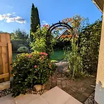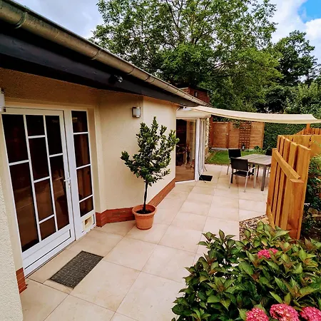 Ferienwohnung dysponuje tarasem z widokiem na ogród, 39 min jazdy od lotniska Berlin Brandenburg im. Willy'ego Brandta.